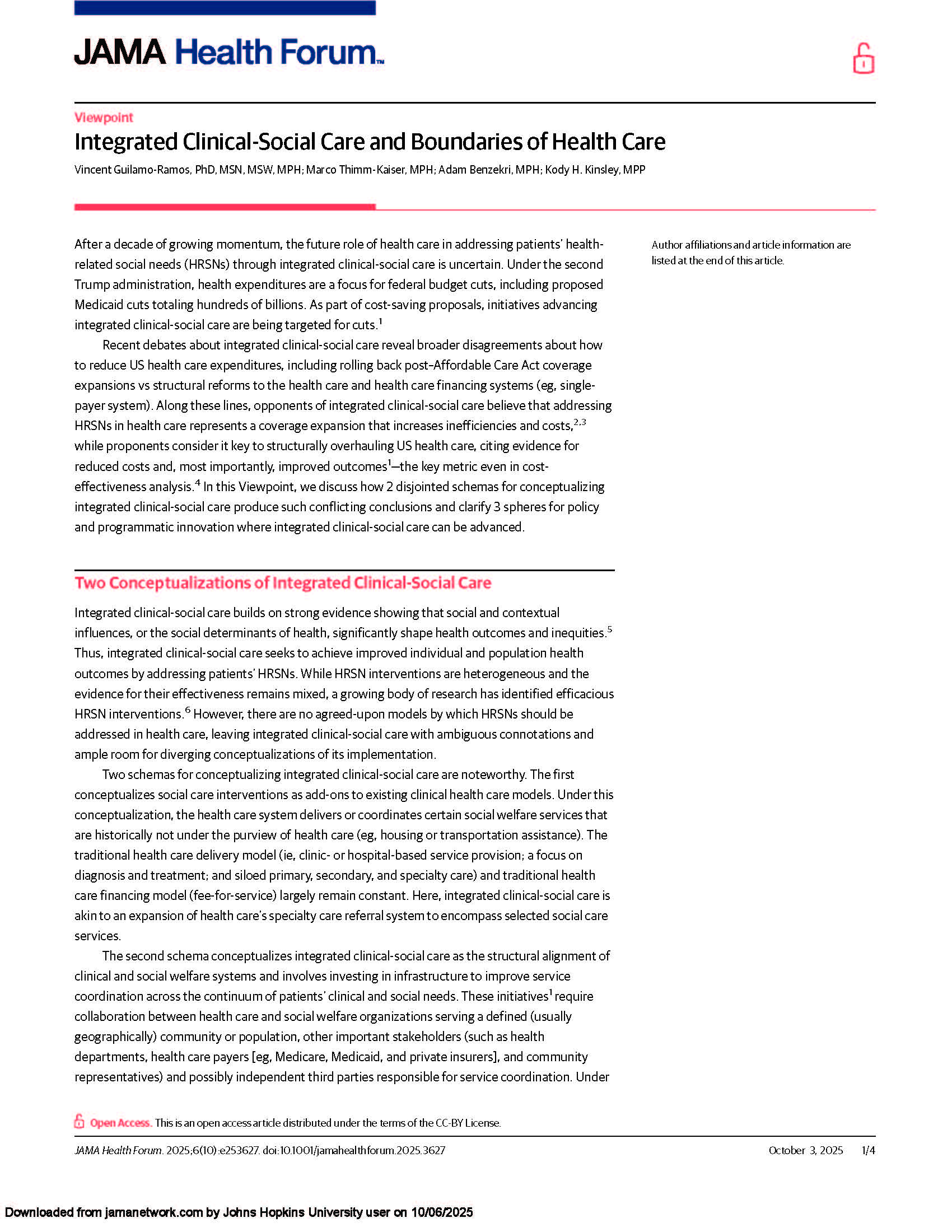 The N-SISS fellowship program combines new thinking and research to produce evidence-based approaches to eliminating health inequities by integrating clinical care and SDOH.